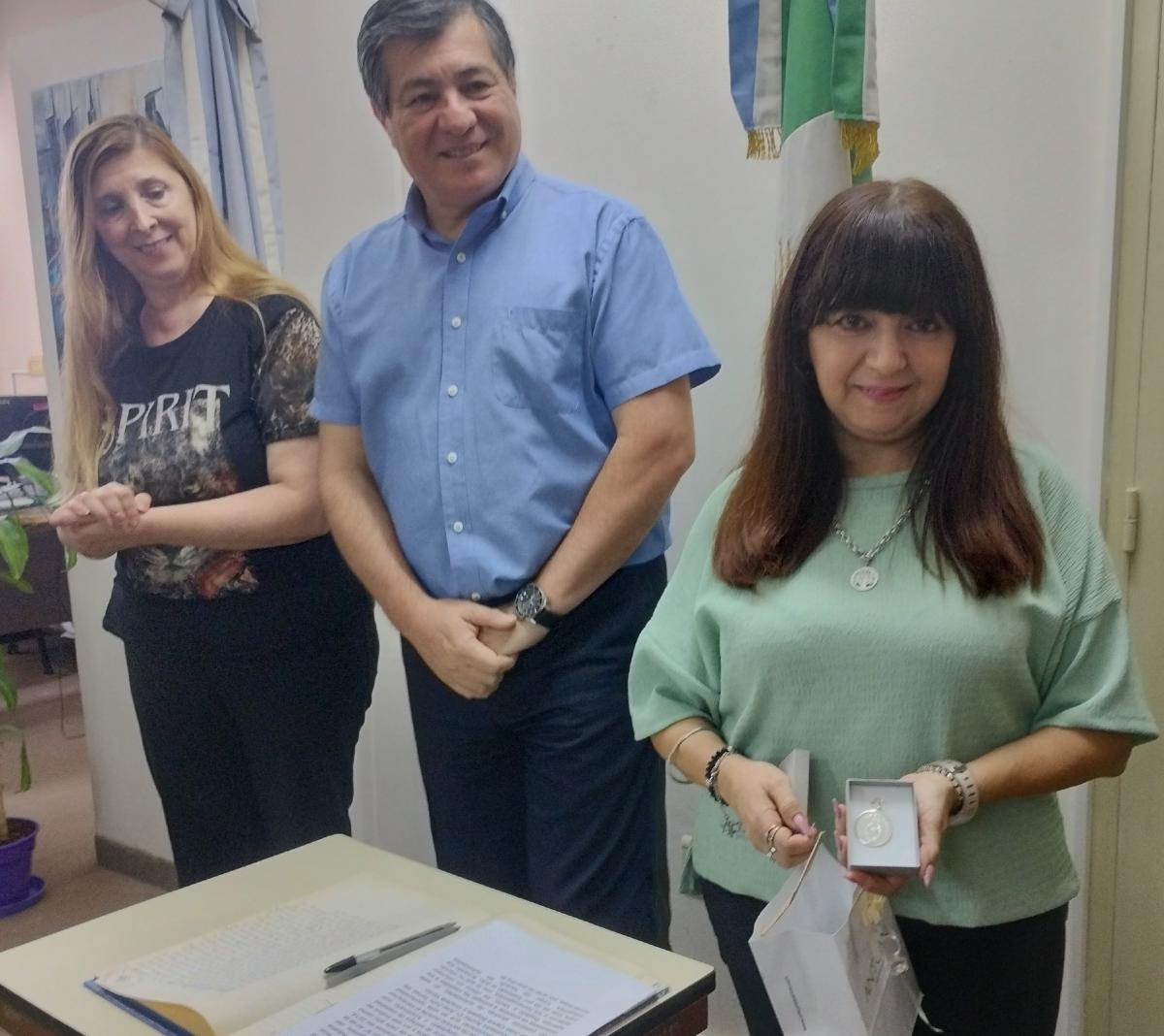 De esta manera el Fiscal General Dr. Gustavo Leguizamón junto a la Fiscal Adjunta Margarita Beveraggi, hicieron entrega de las medallas a los agentes Juan Carlos Bogado y Graciela Verón. Por otra parte anunciaron que se resolvió declarar asueto para todo el personal para el lunes 16 de diciembre.
