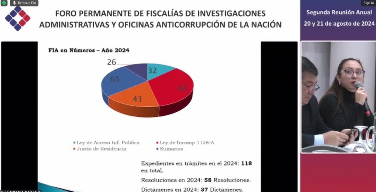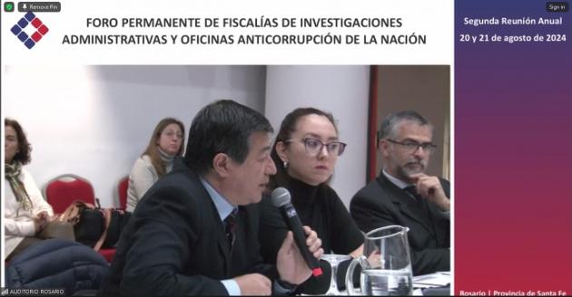 Durante el Foro Permanente de Fiscalías de Investigaciones Administrativas y Oficinas Anticorrupción que se realiza en Rosario, la Fiscalía de Investigaciones Administrativas del Chaco a través del Fiscal General Dr. Gustavo Leguizamón y la secretaria relatora Dra. Vanesa Pereyra Ibarra expusieron el trabajo que viene desarrollando el organismo.
