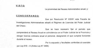 Receso administrativo desde el 24 de diciembre al 31 de enero